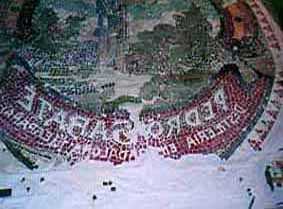 Mosaic protagit amb tela, llest per ser arrancat del mur